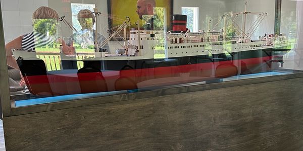 The Newfoundland was the ship that Amelia Island resident Hal Mather and his family immigrated to US from England 60 yrs. ago. It took Hal 10 yrs to build this amazing 9ft model ship. The Newfoundland is now on display at Canopy Way.
